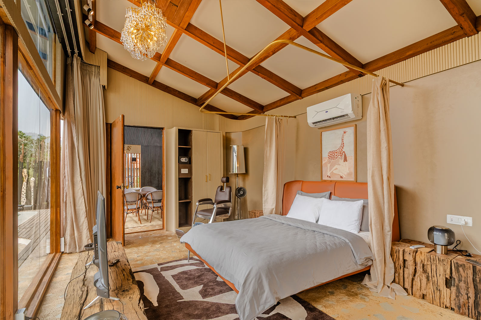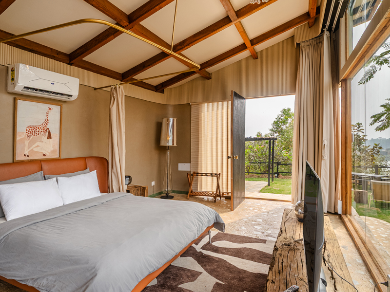 The lake cabin offers a serene and beautiful open view of both the lake and surrounding forest. Please note that the washroom is not attached to the bedroom but is located within the private compound for your exclusive use. The lake itself is occasionally accessed by local tribal villagers, particularly during the early mornings. While they are respectful and cause no disturbance, some couples may prefer a bit more privacy, while others don't mind. Since the lake is part of forest property, we do not have the authority to restrict access.