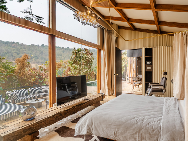 The lake cabin offers a serene and beautiful open view of both the lake and surrounding forest. Please note that the washroom is not attached to the bedroom but is located within the private compound for your exclusive use. The lake itself is occasionally accessed by local tribal villagers, particularly during the early mornings. While they are respectful and cause no disturbance, some couples may prefer a bit more privacy, while others don't mind. Since the lake is part of forest property, we do not have the authority to restrict access.
